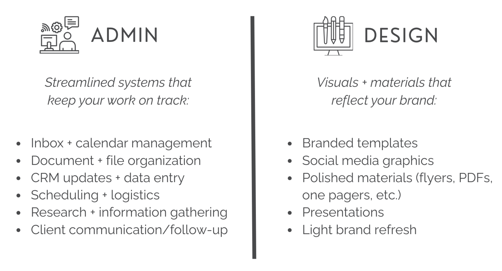Admin = design support for passion-driven professionals.