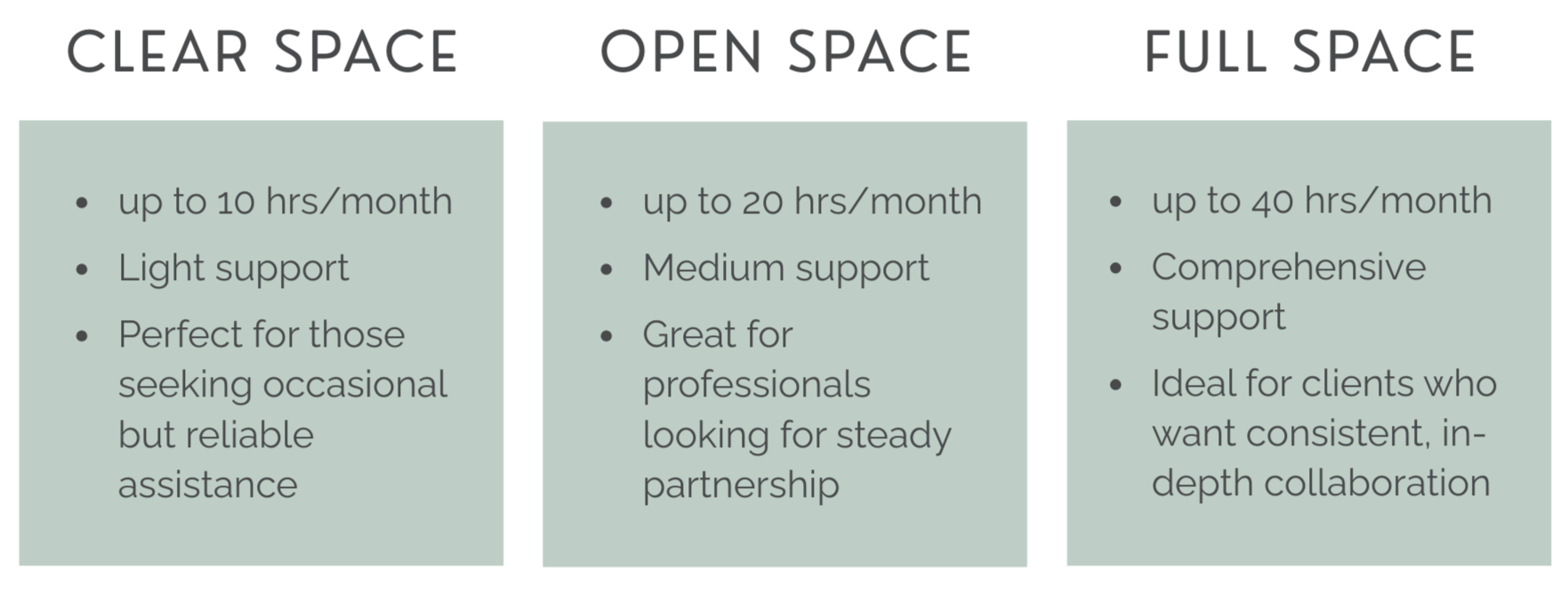 Space Maker offers hourly bundle and one-time project options to ensure that you have the level of support you need to achieve your goals.